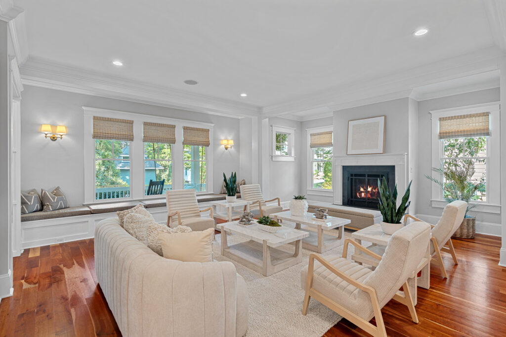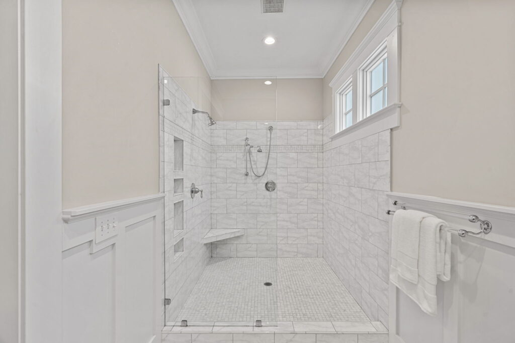 In 2008 John Marshall Custom Homes was hired to build a home on Brook Street, a quiet street in the heart of downtown Davidson. Designed by architect Michael Neff, this home features 4 bedrooms, 3 1/2 baths, a cook’s kitchen, a covered screened porch, a generous living and dining room, and a 2nd floor playroom. Custom bookshelves and sitting benches are other features of the home.