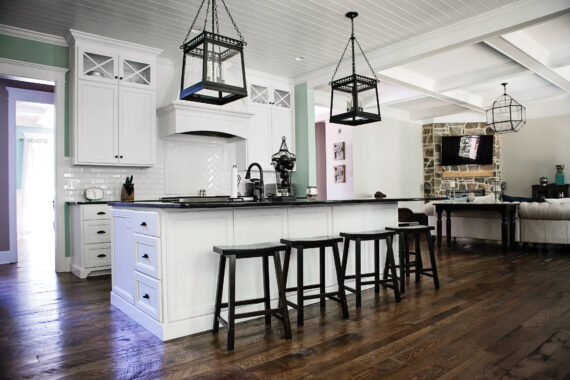 The largest home we’ve ever built, but not in the least bit pretentious. In fact, the varied color scheme inside and out has led many to call this home ‘playful’ or ‘whimsical.’ Most importantly, it’s a very comfortable home, which is important for this family with four young children (all girls) and two dogs that size wise would fit right in at the barn which is around the corner.