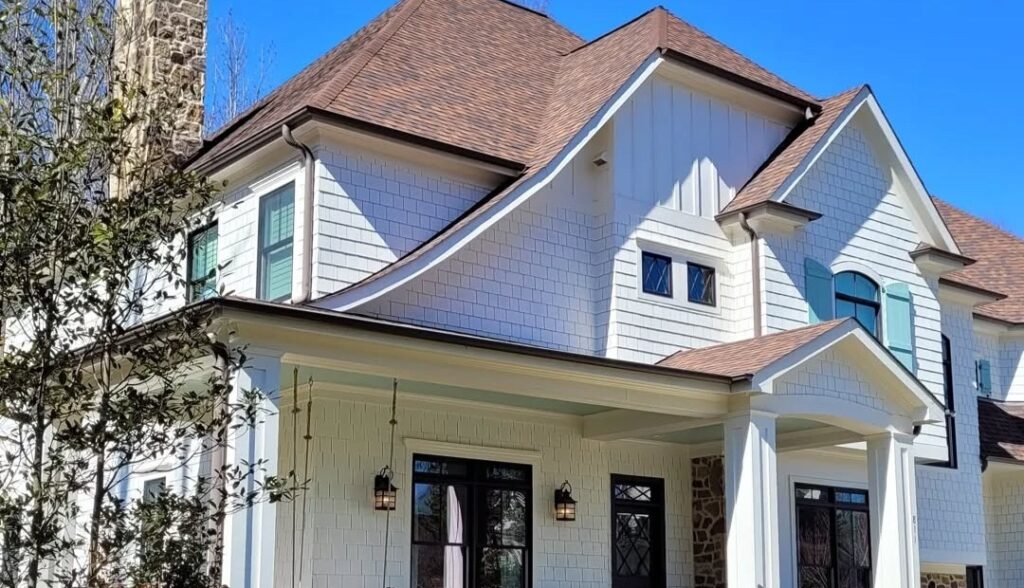 The home features a cook’s kitchen, a spacious primary suite with his and hers bathrooms, and great spaces for the kids, including a playroom and a screened back porch.